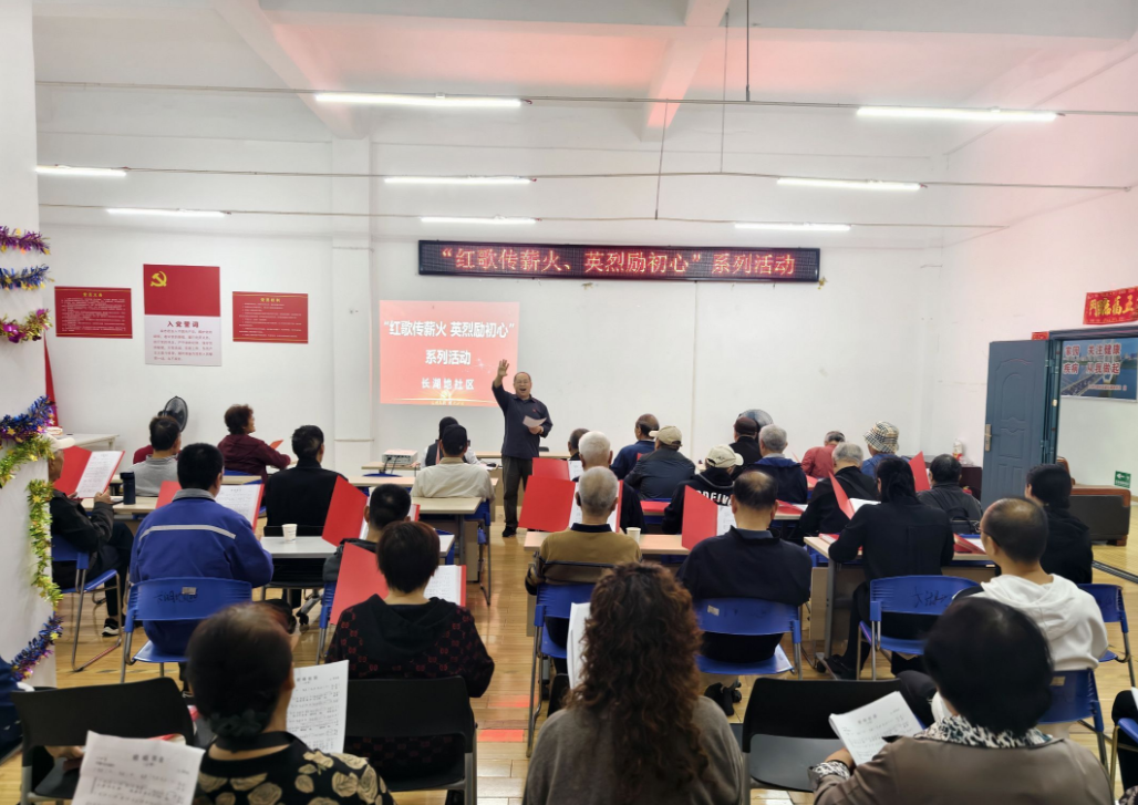 新村街道长湖地社区开展“红歌传薪火,英烈励初心”主题活动,通过重温入党誓词、合唱红歌、讲述英烈故事等方式,让党员在红色旋律中追忆英雄事迹,强化党性修养。
