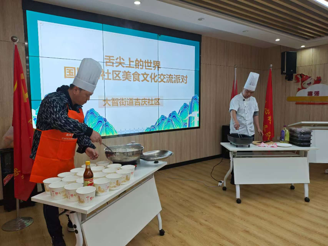大智街道吉庆社区开展“舌尖上的世界”国际化社区美食文化交流活动,30余名中外居民参与。通过搭建美食互动平台,安排中、西厨师现场展示饺子制作与牛排煎制技艺,让居民在美食品鉴中增进邻里情谊。