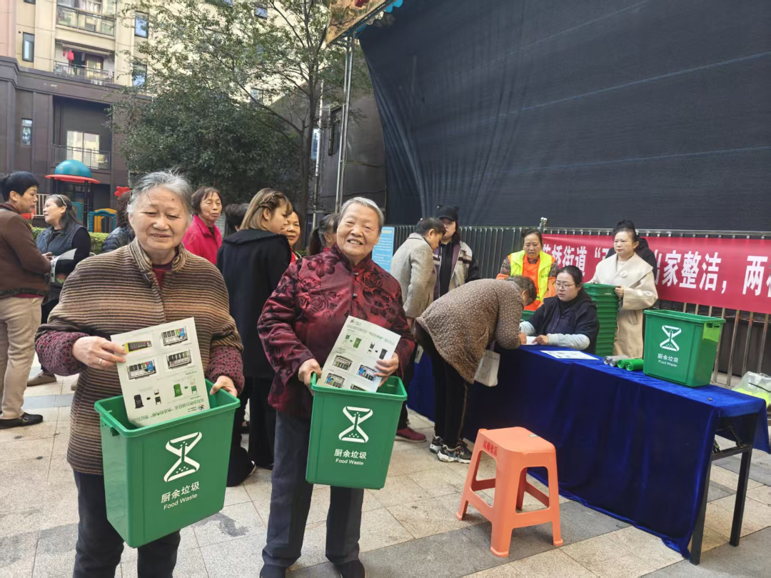 花桥街道红桥社区开展垃圾分类主题宣传活动,组织“两长四员”及物业人员学习垃圾分类管理办法,现场向居民讲解垃圾分类知识、指导使用“两袋两桶”,传播绿色低碳理念。