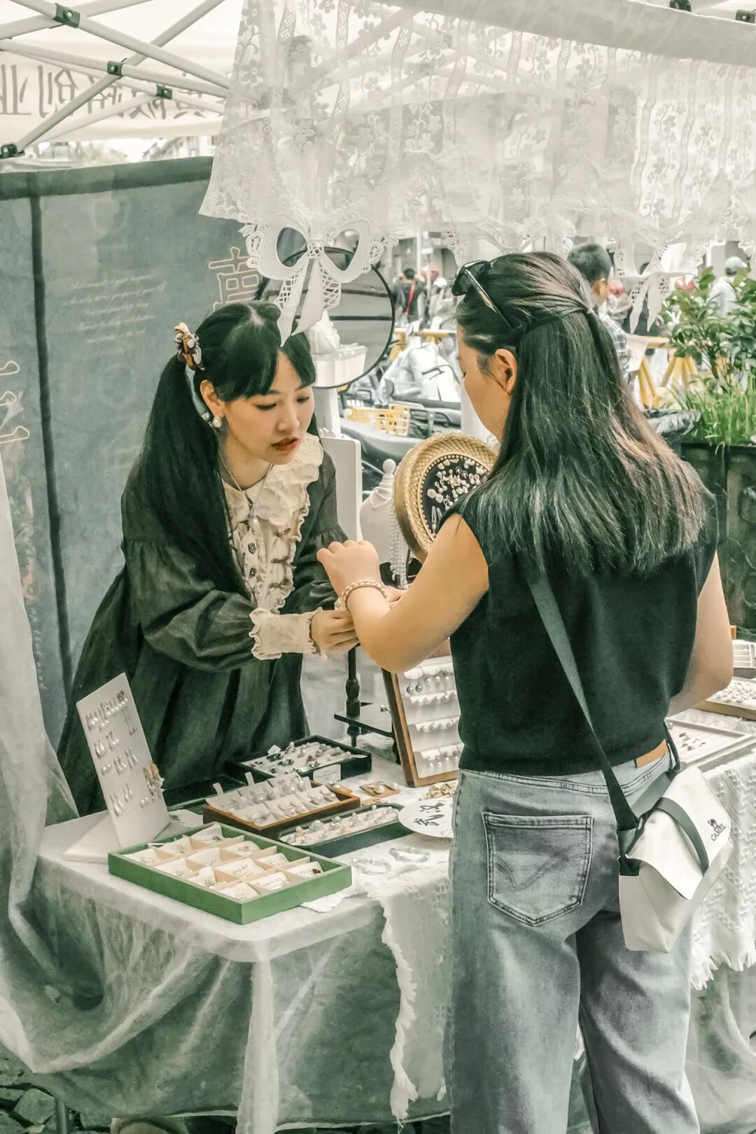 除了资源共享,市集更是一个绝佳的开放式课堂,每一次出摊都是一次学习机会。“我会关注那些做得好的摊主,从摆台方式、陈列布置和整体氛围营造,都能学到很多。”张金风坦言,这种同行间的互相启发,让她得以持续优化自己的品牌呈现。