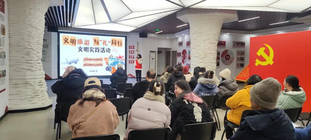 区委宣传部开展“文明旅游,与‘礼’同行”文明实践活动。在区新时代文明实践中心,通过普及文明旅游行为规范、倡议文明旅游,提升居民群众文明意识,共同守护美丽风景。