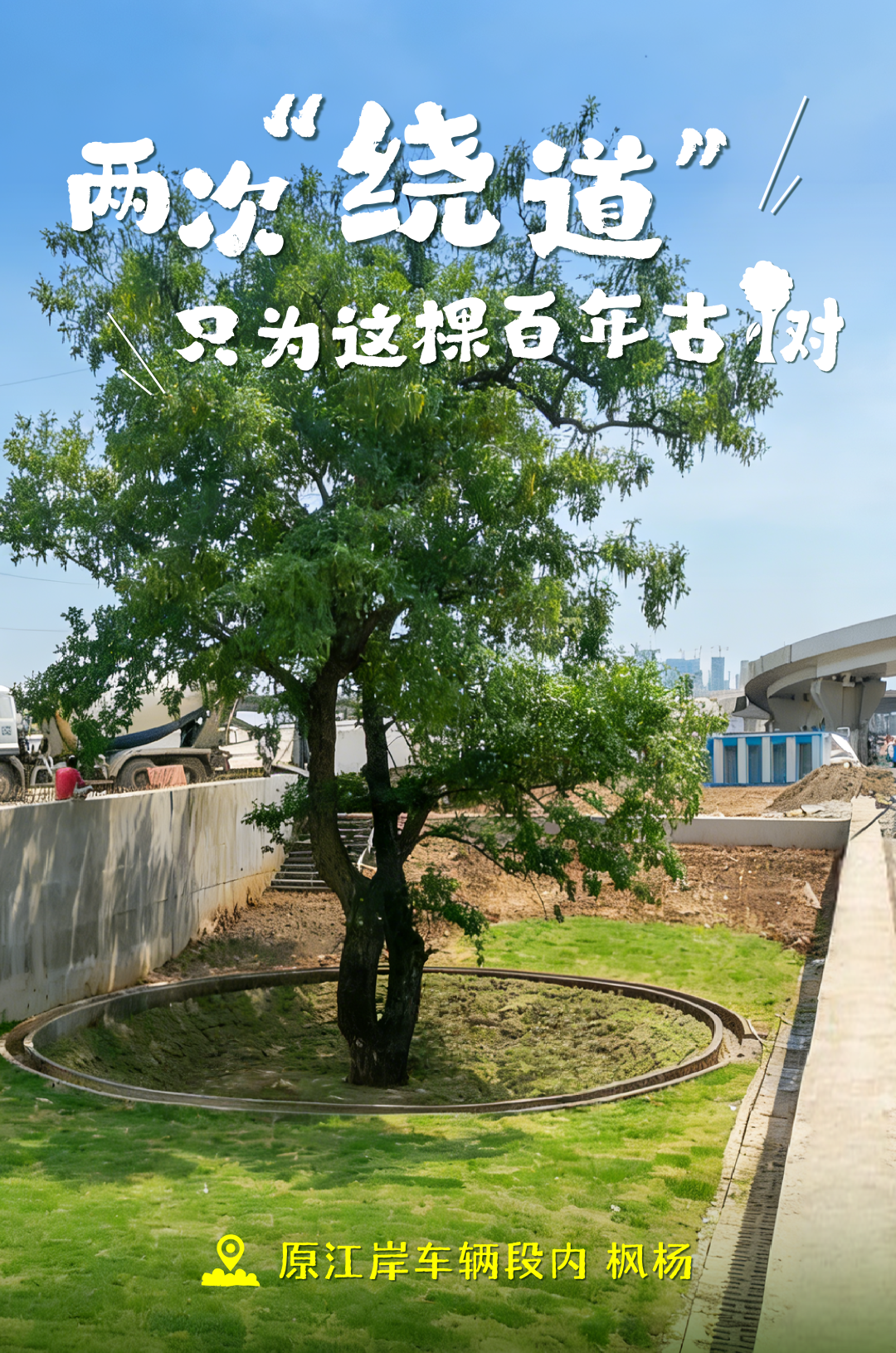 为保护这棵百年古树,在交通要道的建设施工中,相关施工单位曾两次调整线路、绕道而行,用“为树让路”的实际行动,谱写了江岸生态保护的生动一景。