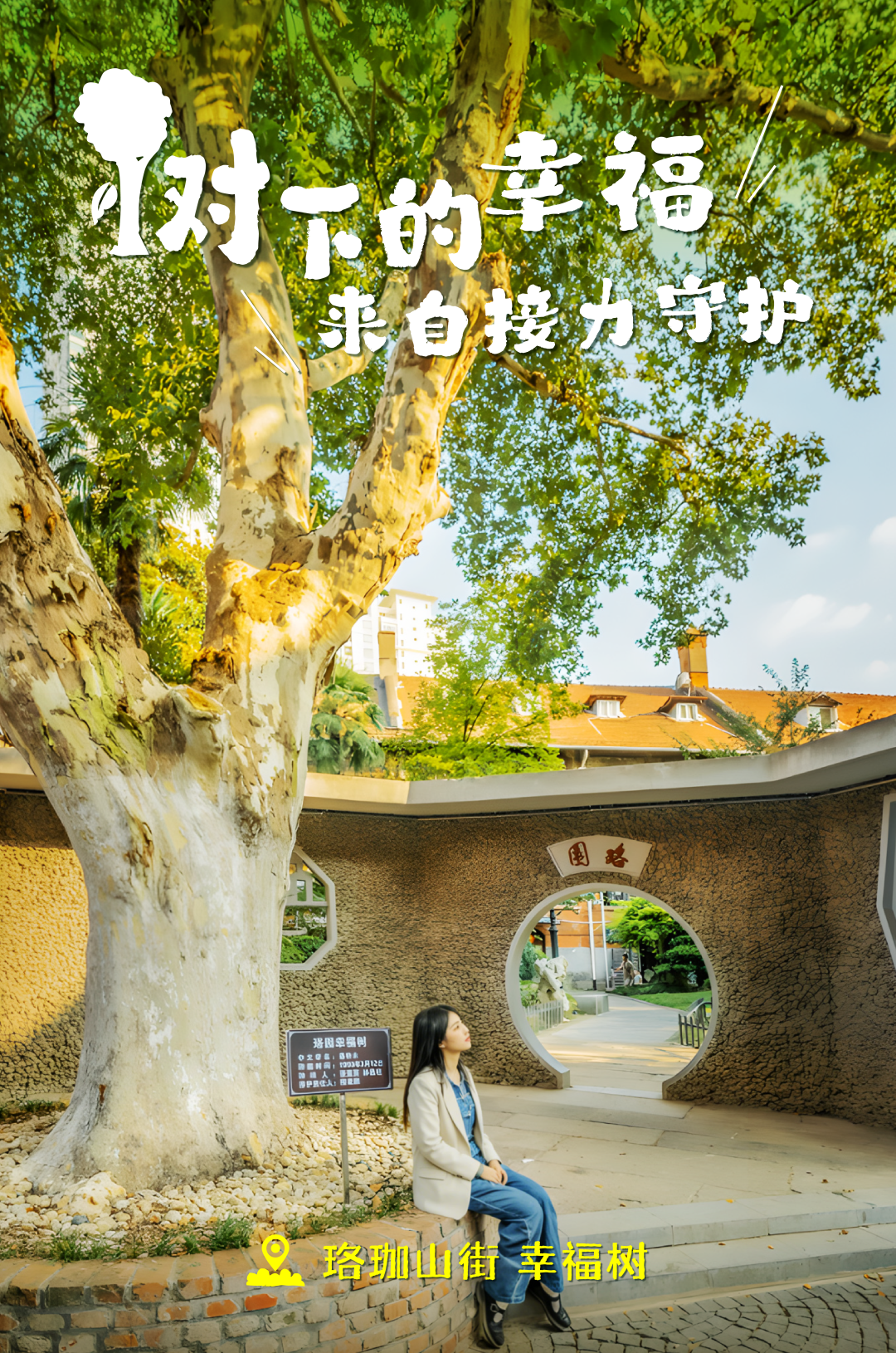 七十多年前的植树节,居民孙昌桂栽下这批法桐,播下植绿初心。2022年,江岸区园林局为其立牌保护并命名“幸福树”,让这份绿意在一代代江岸人的守护中,成为街巷幸福生活的独特风景。