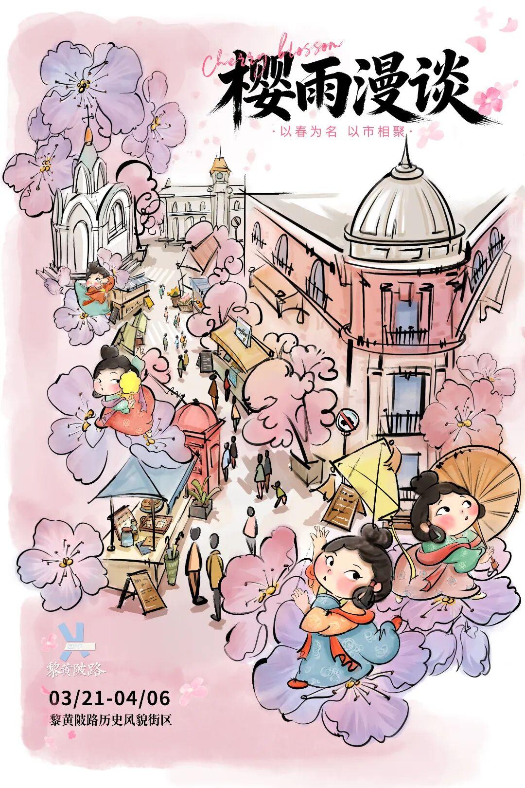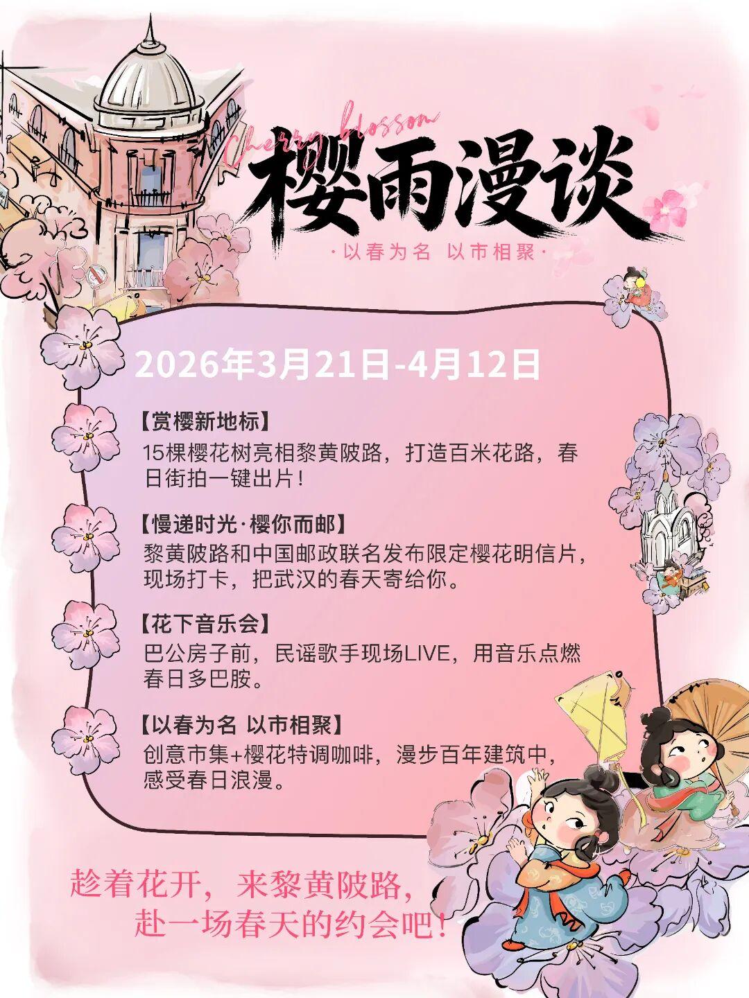 黎黄陂路15棵樱花树盛放,百米花路等你来拍,限定樱花明信片、民谣LIVE、创意市集与樱花特调如约而至。