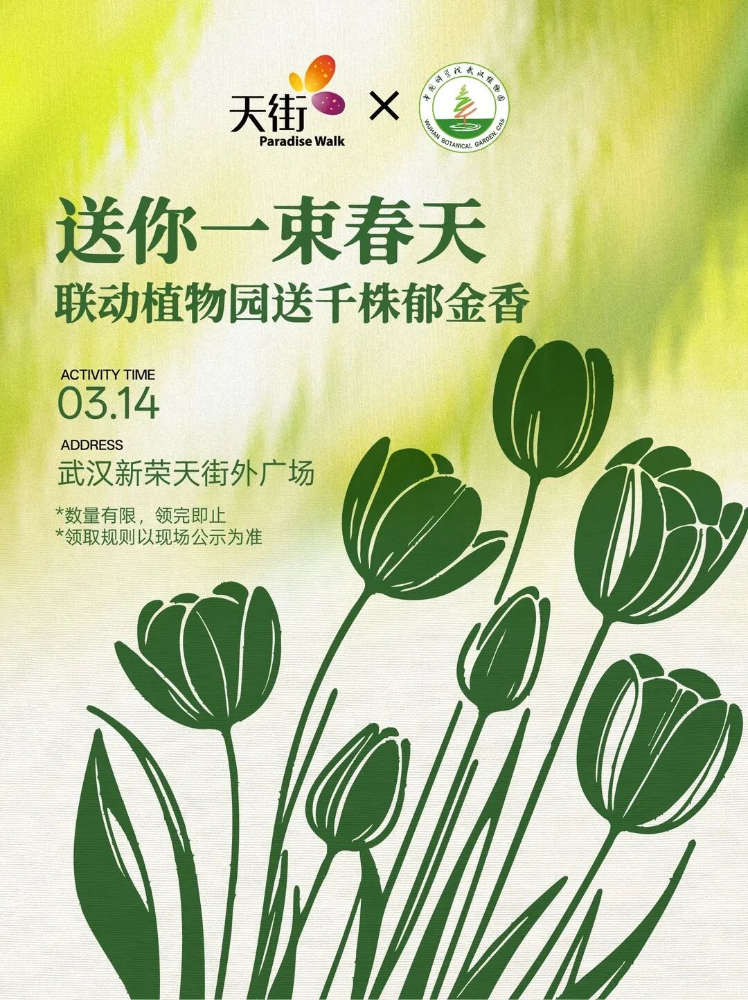 新荣天街x武汉植物园梦幻联动,千株郁金香免费领!