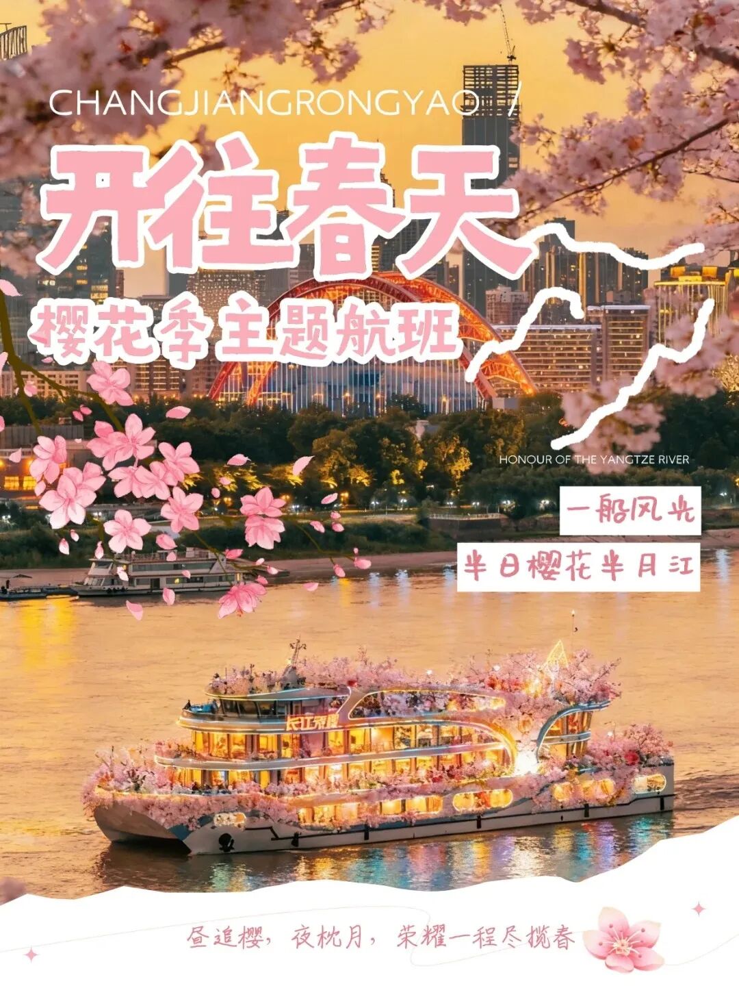 以诗为媒,以春为景,长江荣耀号游船将唐诗的浪漫与春日的美好完美融合,以唐诗《春江花月夜》为文化底色,将“春、江、花、月、夜”五大元素融入游船各楼层体验,为你打造一场沉浸式东方美学盛宴。
