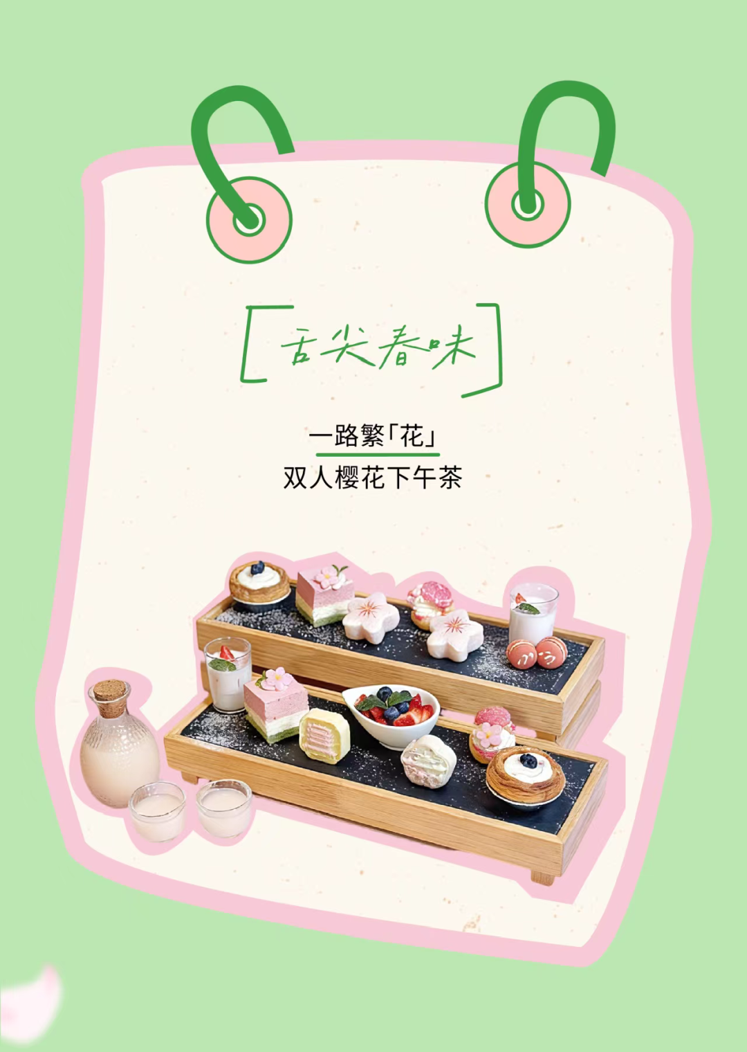 下午茶以樱花为灵感,融合武汉本土风味,酒店推出一路繁「花」双人樱花下午茶,咸甜搭配,颜值出片,是赏樱归来的最佳歇脚之选。