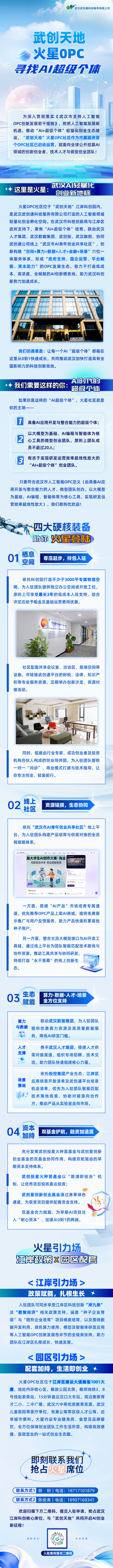 寻找AI超级个体!武创天地火星OPC社区正式运营 2026-03-17 16:01 区经科局 武汉投控集团 0 近日 由江岸区与武汉投控集团 权属企业产研院旗下武创通 联合打造的“武创天地”火星OPC社区 正式启动运营 现面向AI+超级个体、一人公司(OPC) 及微型创业团队公开招募